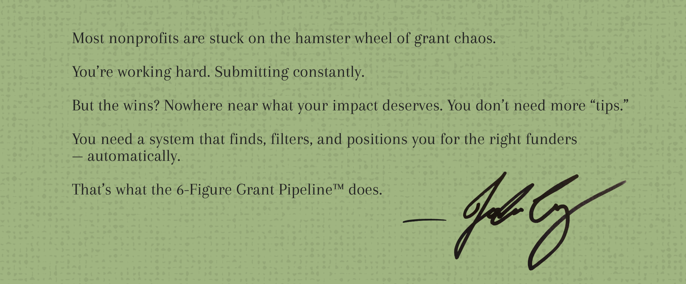 This is the foundation for every six-figure grant year we’ve helped create.